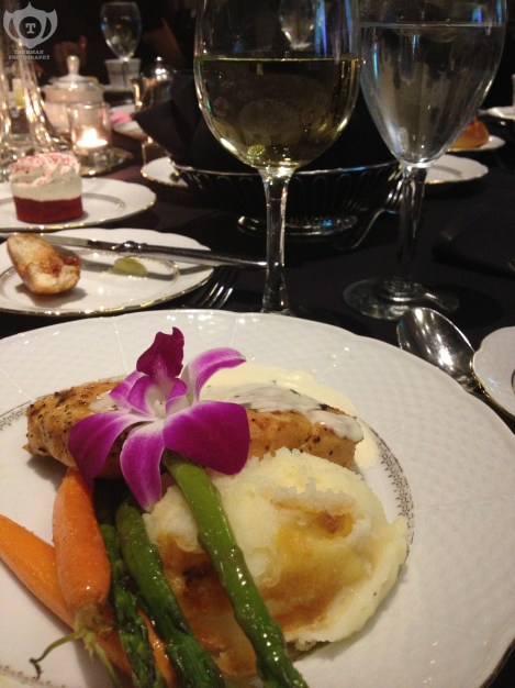 When it came to dinner, the meal started off with a salad with pine nuts and strawberries. It was surprisingly good. I wasn’t sure how it would go because I had never tried that blend before but the sweet and nutty flavors mingled well. For the main course, I had a glass of Riesling with the standard chicken in a cream sauce, mashed potatoes, carrots and asparagus. Those that know me know that I don’t eat meat very often, but for an occasion such as this I didn’t mind. I must say that the lemon cake was divine though. The lemon flavor exploded in your mouth. I felt a bit on the greedy side because I wanted another piece.