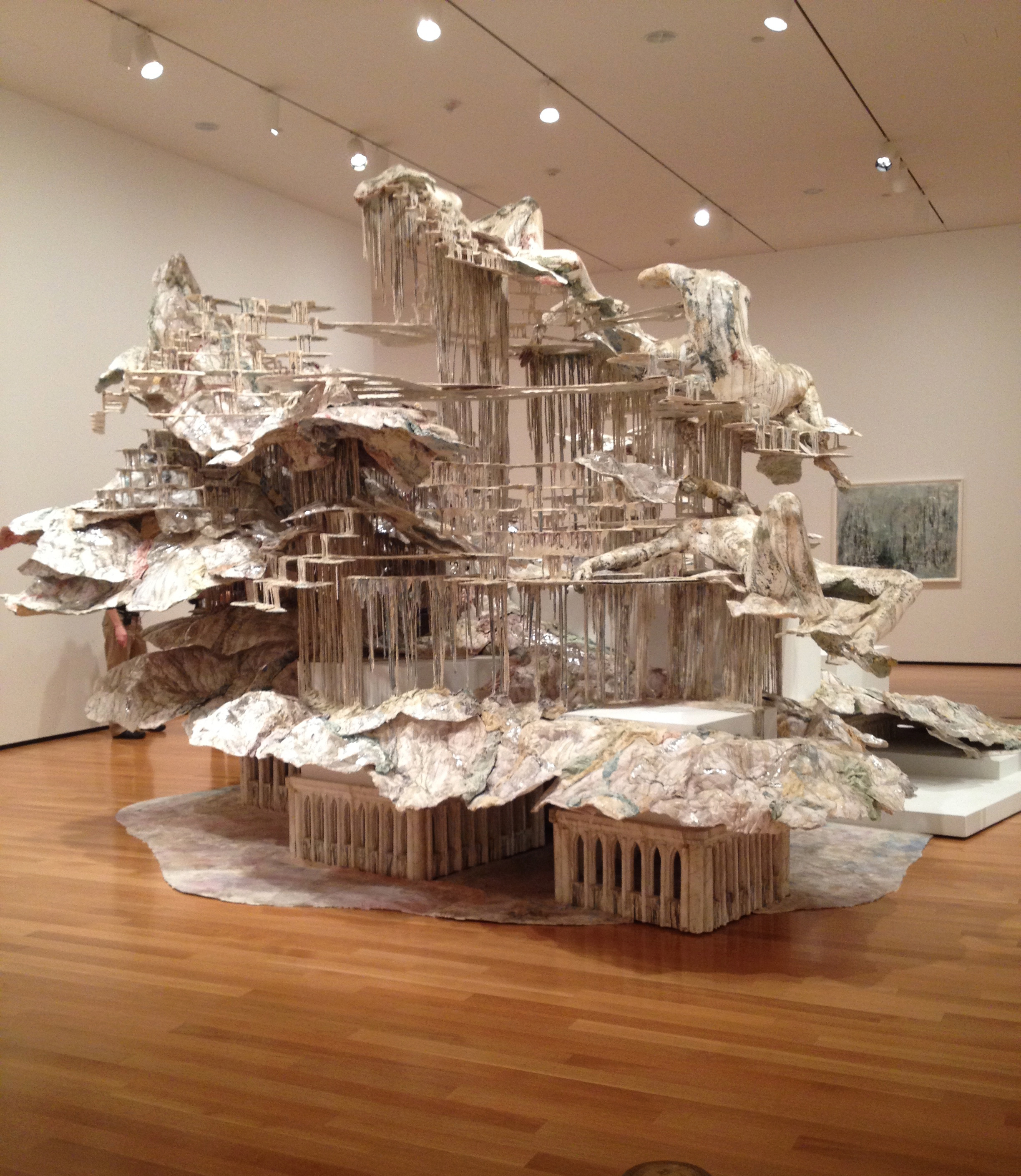 Here’s a little bit about Al-Hadid and her main piece: “Kent State University graduate Diana Al-Hadid’s monumental sculpture Nolli’s Orders intermingles landscape, architecture and the human figure. Hovering between architectural ruin and figurative sculpture, the thirteen-foot high sculpture is constructed of steel, polymer gypsum, fiberglass, wood, foam and paint. Nolli’s Orders was inspired by sources ranging from Italian and Northern Renaissance painting to Gothic architecture and Hellenistic sculpture. Its title refers to the eighteenth century Italian architect and surveyor Giambattista Nolli, who is known for the iconic map of Rome that he completed in 1748. Al-Hadid was born in 1981 in Aleppo Syria and currently lives and works in New York City (Source).”