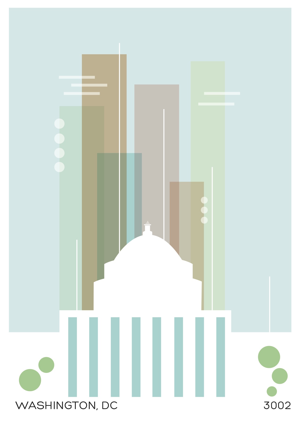 In this class I had to do quite a bit of research into the Atomic age. This was during the mid-century when everyone was obsessed with space and the future. After sketching and choosing the cities I wanted to represent in the postcard, I scanned my sketches into illustrator and begun playing around with the compositions. I had a pretty set color palette that I used for all three. I just played around with the opacity to get different shades.