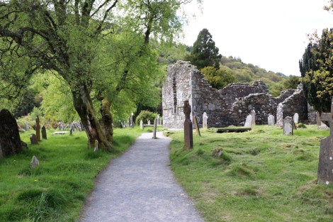 The tour we selected was to Glendalough and Powerscourt. It was one of the best decisions we could have made. It took nearly seven hours round-trip as we rolled on a big double decker bus winding through Wicklow County. We passed the Docklands’ countless sheep before we reached the historic, monastic city of Glendalough. This place is a site to behold. We weaved our way through the old graveyard and ruins of the old 6th century monasteries before hitting the trail to the lakes which unfolded before us. Honestly, Ireland created the color green.